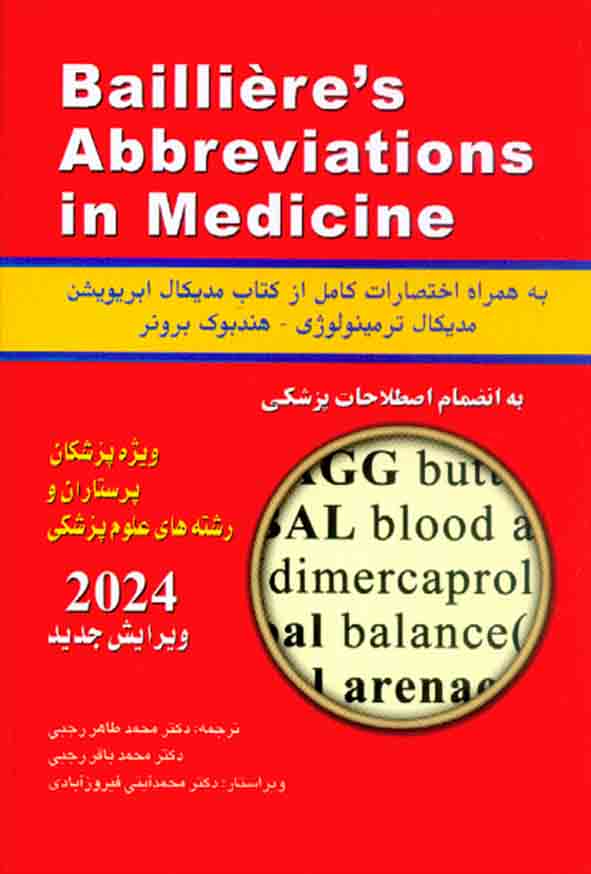 این اثر یکی از بهترین واژه نامه های اختصارات موجود است و دارای اختصارات کامل از کتاب مدیکال ابریویشن، هندبوک داخلی-جراحی برونر و مدیکال ترمینولوژی است. کتاب پیش رو همچنان حاوی اصطلاحات پزشکی موضوعی است. اثر حاضر برای پزشکان، پرستاران و دانشجویان رشته های علوم پزشکی کاربردی است.این کتاب در سال 1400 توسط انتشارات اندیشه رفیع چاپ شده و دارای قطع جیبی و جلد شومیز است.