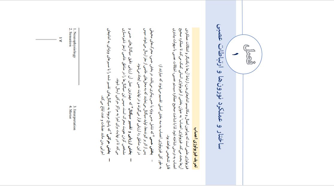 فیزیولوژی اعصاب، به عنوان یکی از مهمترین و کاربردی ترین شاخه های علوم زیستی، به بررسی عملکرد سیستم عصبی و سازوکارهای پیچیده آن می پردازد. این کتاب با هدف ارائه دیدگاهی جامع و چند وجهی به جنبه های گوناگون این علم تدوین شده است. هر فصل کتاب حاضر به تفصیل به یکی از مفاهیم بنیادین فیزیولوژی اعصاب میپردازد تا درک عمیق تری از این سیستم حیاتی فراهم آورده.این کتاب دارای 262 صفحه می باشد .که با قلم دکتر حجت اله عطایی و ویراستاری خانم دکتر جوکار گرد آمده است .