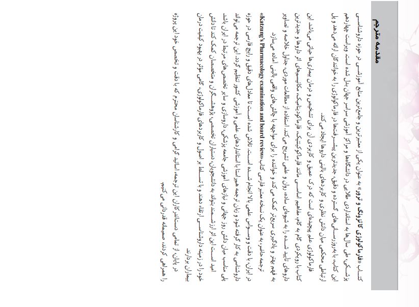 اثر پیش رو «مرور و آزمون های فارماکولوژی کاتزونگ - ترور 2024» با ترجمه "دکتر مجتبی مجتهدی زاده / دکتر الهه کریم پور / مینا اسماعیلی / دکتر فاطمه افرا" میباشد که در سال 1404 توسط انتشارات اندیشه رفیع منتشر شده است.فراگیری علم فارماکولوژی و شناخت دارو ها و کاربرد آن یکی از دغدغه های دانشجویان پزشکی،داروشناسی و دستیاران است.کتاب حاضر با هدف ارائه مطالبی جامع،خلاصه وار و حذف متون غیر کاربردی کتاب کاتزونگ ترور به عنوان مرجعی مفید مورد استفاده داوطلبان آزمون های جامع بورد تخصصی تدوین شده است.ترجمه روان و شیوای کتاب به تفهیم مطالب توسط مخاطبان خود کمک شیانی نموده است.در ویرایش چهاردهم فصل مرتبط با کانابیوئید ها اضافه شده و متون سابق بر اساس جدید ترین دستاورد های علم فارماکولوژی به روز رسانی شده است.اثر دارای قطع وزیری و جلد هارد (سخت) است.