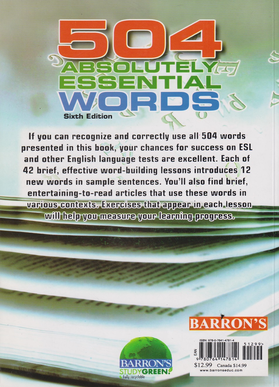 کتاب حاضر دارای 504 واژه کاربردی است که فراگرفتن این لغات برای هر زبان آموزی کاملا ضروری میباشد.این کتاب شامل 204 صفحه سه رنگ به زبان انگلیسی میباشد دارای CD است.